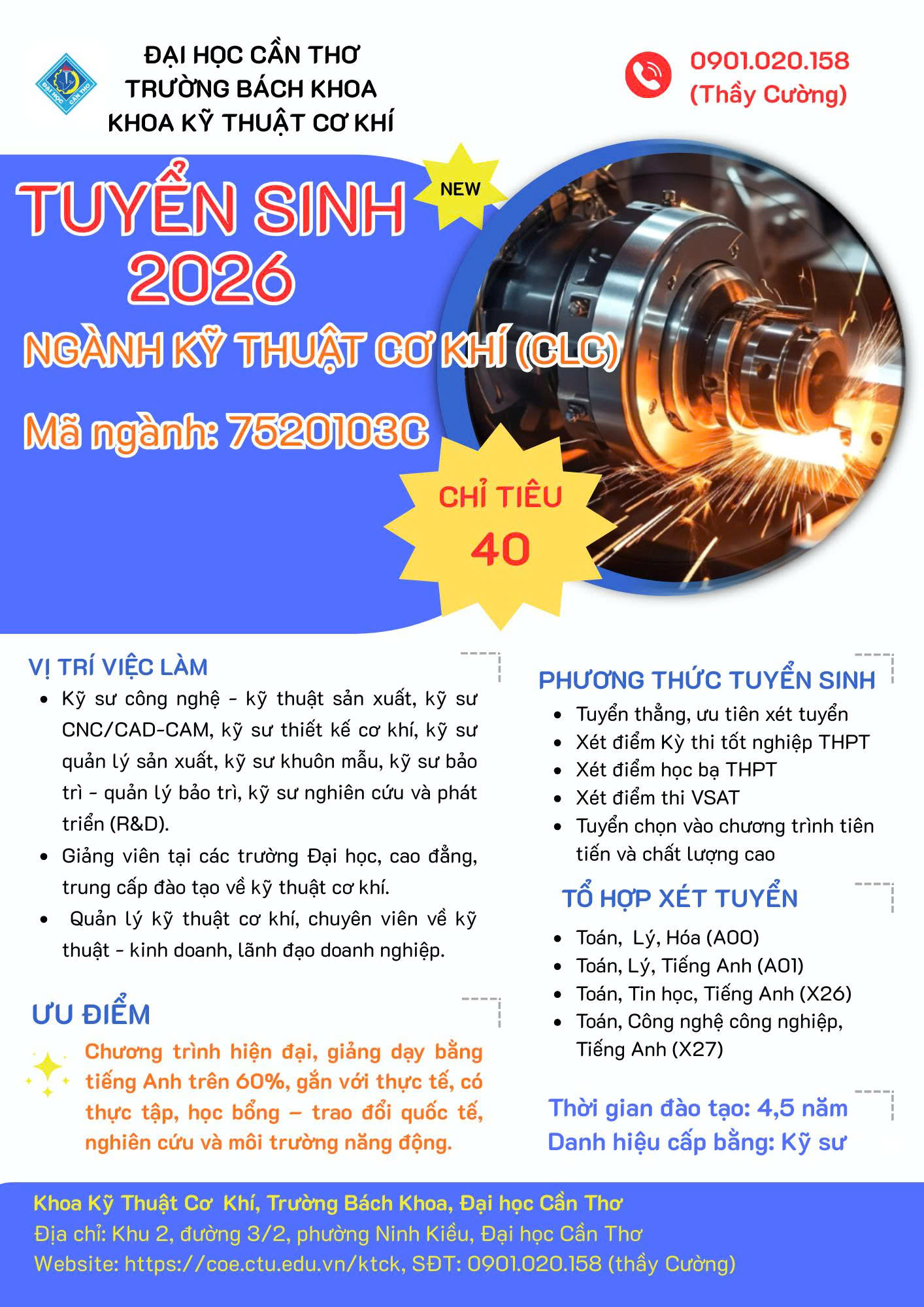 Tuyển sinh ngành Kỹ thuật Cơ khí chất lượng cao