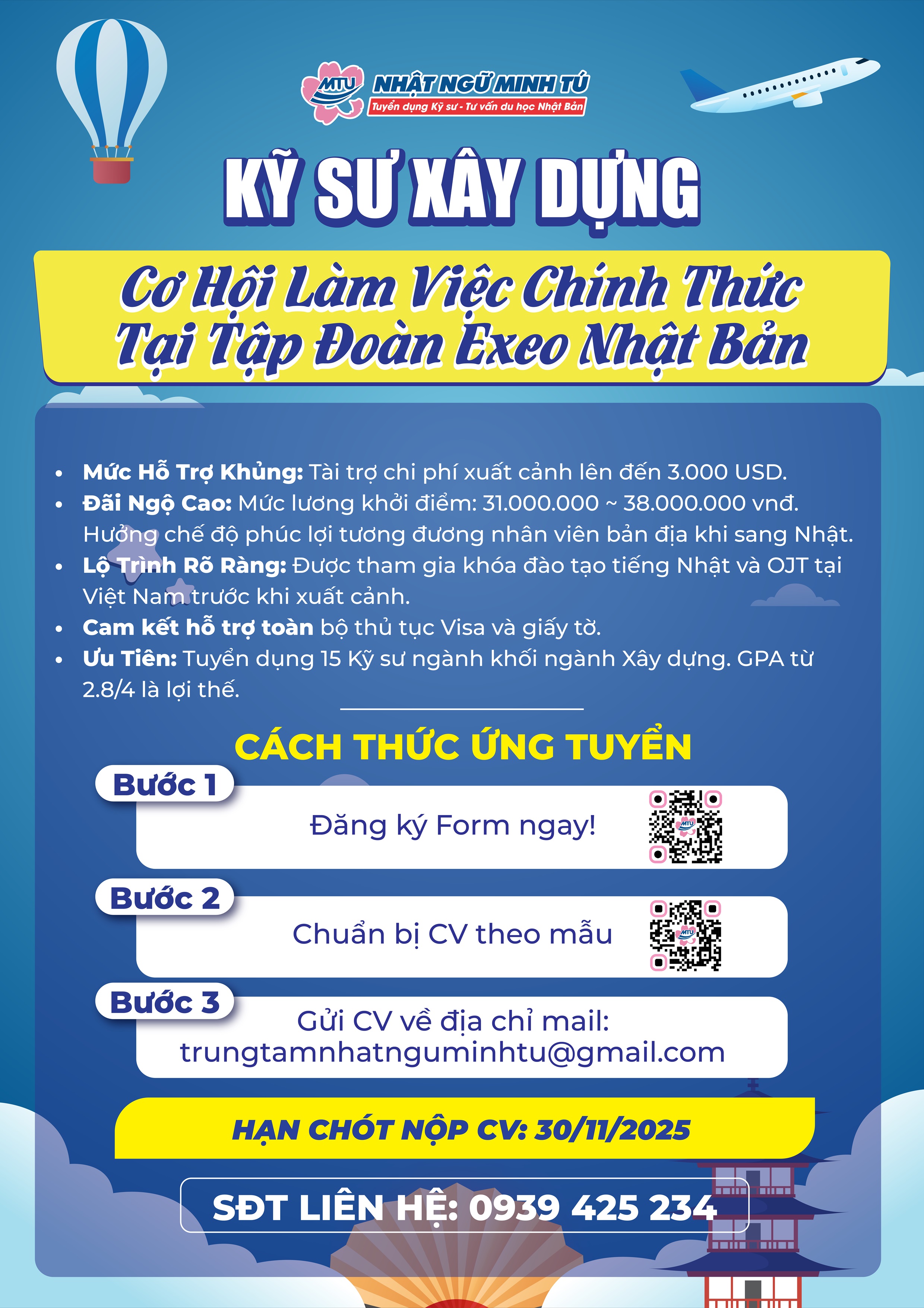 TUYỂN DỤNG KỸ SƯ XÂY DỰNG LÀM VIỆC TẠI NHẬT BẢN